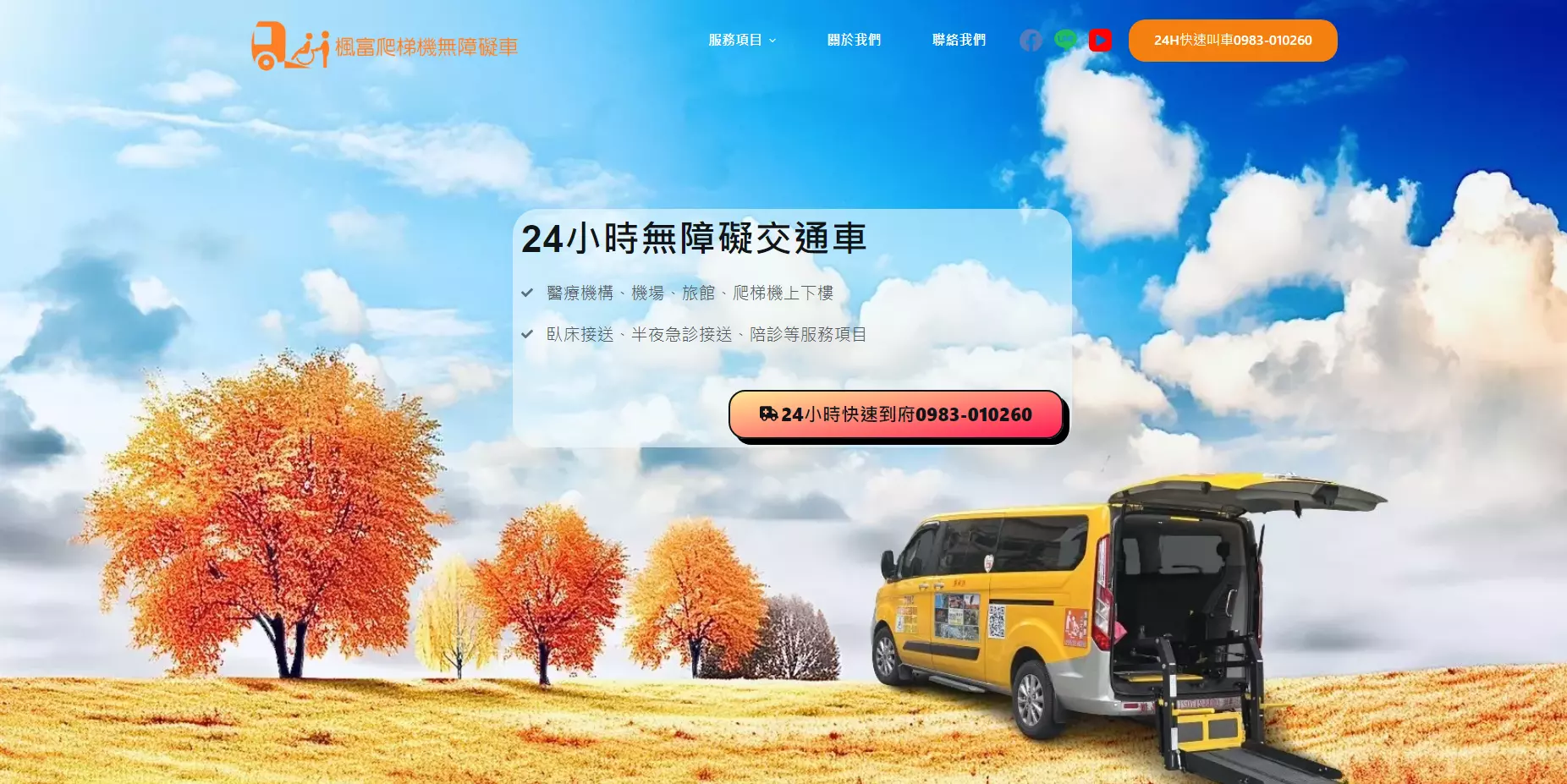 高雄無障礙計程車(提供輪椅接送、爬梯機上下樓服務、跨縣市轉院、聚餐、旅遊、客製化包車等服務),提供24小時預約及全年無休出車服務 。團隊司機皆為優良司機、車輛為無菸車、提供最專業的服務。